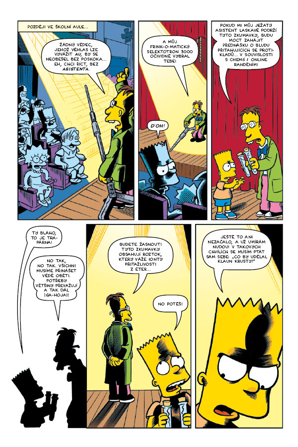 A v tomto čísle se vám to bude hodit, protože Líza přijde s úžasným bludištěm v kukuřičném poli… jenže se z něj sama nedokáže dostat ven! A pak Bart začne koketovat s vědou a výsledkem bude, že se z něj stane nejnenáviděnější kluk ve Springfieldu! A co teprve, když do kin dorazí nový film s Itchym a Scratchym!