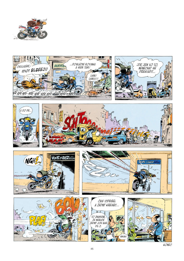 Druhý díl báječných dobrodružství party pravých motorkářů se posunul o generaci, po dvaceti letech si hrdinové asfaltu pořídili nové stroje a mezi sebe přijali mladé adepty motocyklismu. Ti si dělají "velké" papíry, prožívají první kontakt se strojem, terénem a pevnými objekty. Opět příběhy jako ze života, opět vtipná dynamická kresba.