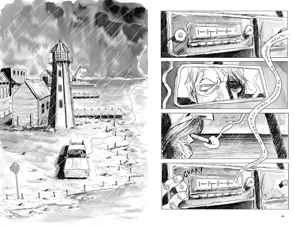 Potápěč Jack je zvyklý na práci pod tlakem, sváří podmořské konstrukce a užívá si přitom samotu pod hladinou. S tlakem nadcházejícího rodičovství se tak dobře vypořádat neumí. Když se mu při jednom z ponorů zjeví nadpřirozený úkaz související s jeho otcem, začíná se mu vybavovat traumatické dětství a minulost čím dál víc splývá s přítomností. Dokáže se Jack vrátit ke své rodině, nebo se utopí v oceánu vzpomínek? Podobně jako v sáze Essex County vypráví Jeff Lemire osudový příběh o otcích a synech, o paměti a realitě. Tentokrát však rodinné drama propojuje s tradicí amerických mysteriózních seriálů ve stylu Zóny soumraku nebo Městečka Twin Peaks. Také proto si Potápěč vysloužil pověst jednoho z nejlepších komiksů uplynulé dekády.