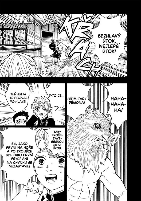 Po svém vítězství nad bubnujícím démonem vyšel Tandžiró před dům, kde už na něj čekal Zen’icu Agacuma zbitý chlapcem s hlavou divočáka. Jak se s touto situací náš hrdina vypořádá?
